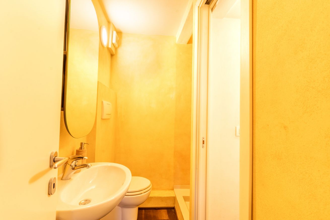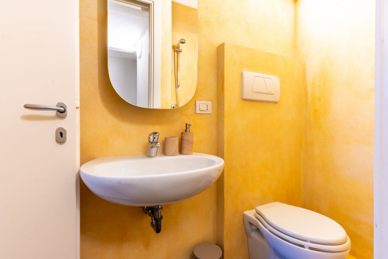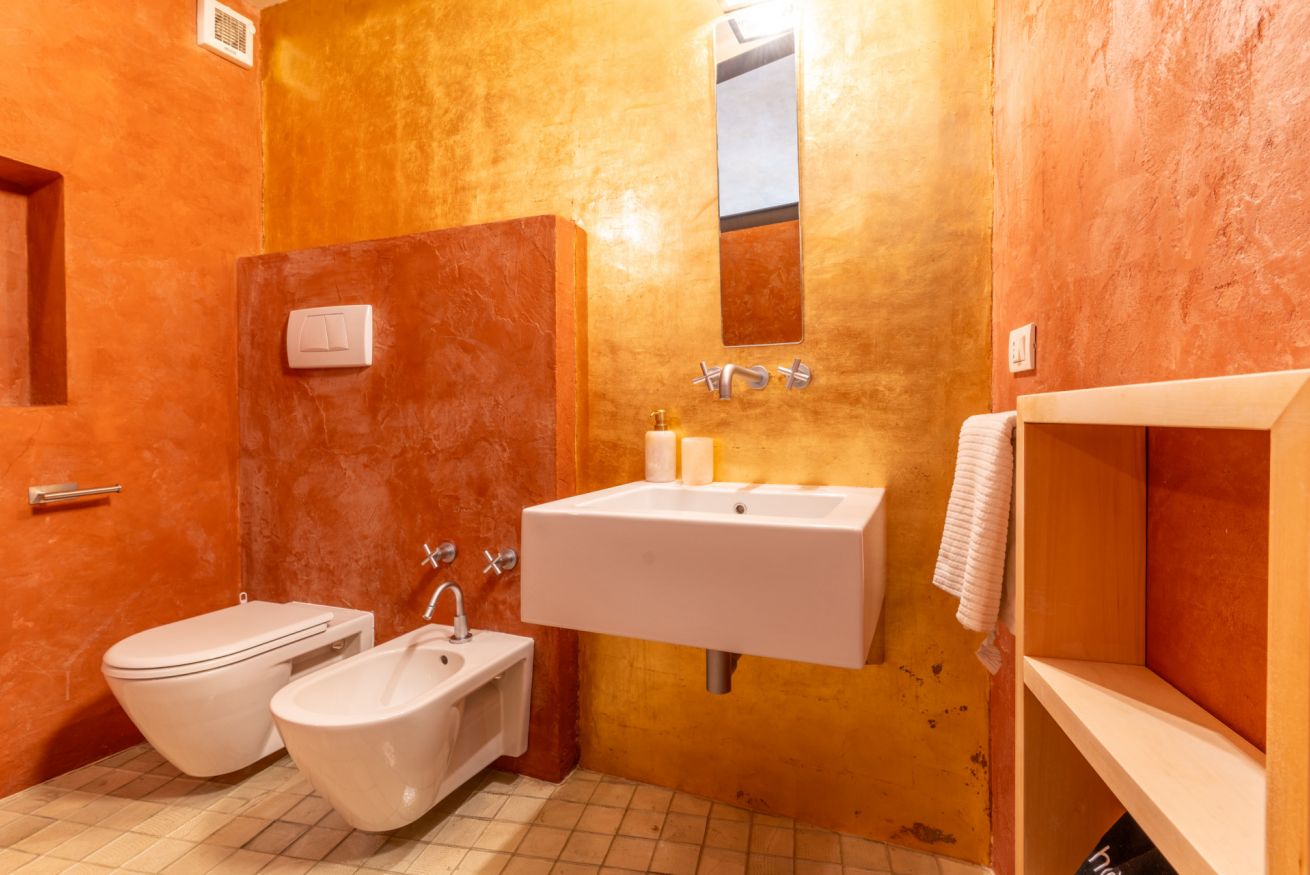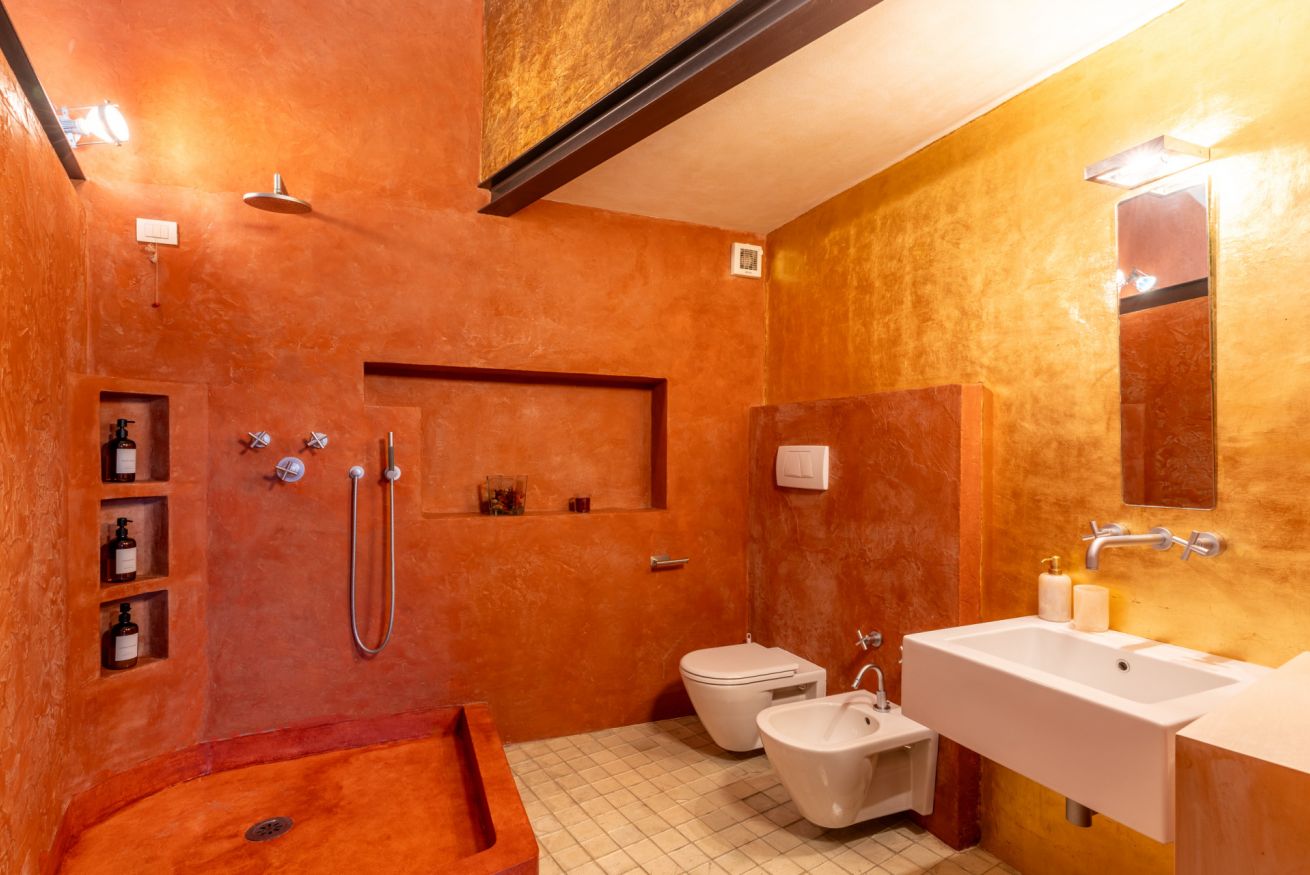 ✔ Due bagni raffinati con materiali di pregio, uno en-suite e uno accessibile dal salotto