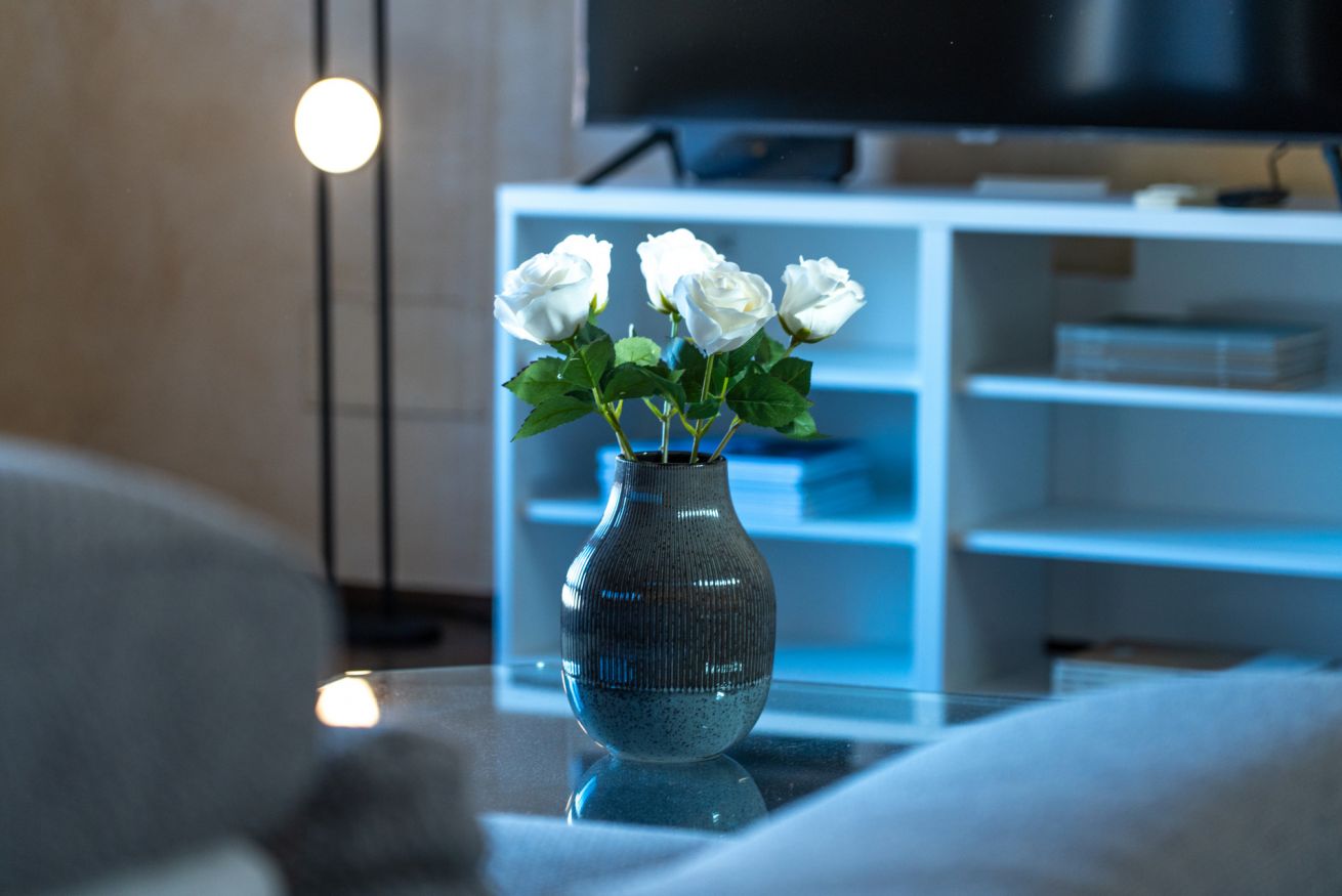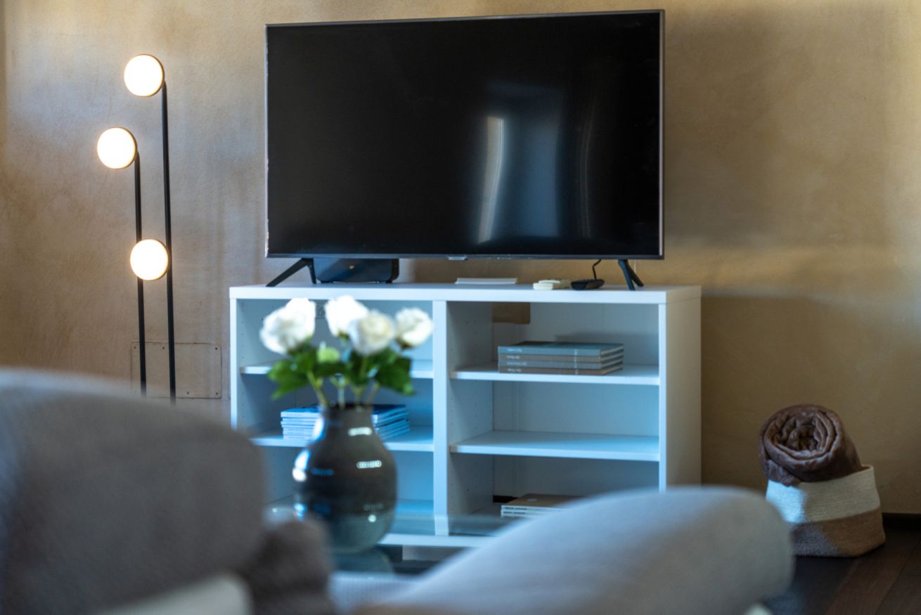 ✔ Zona living con divano comodo, smart TV da 55” e tavolo da pranzo per cene e momenti conviviali
