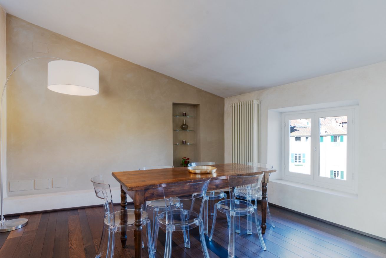 Scopri Lucca da una prospettiva unica con un soggiorno esclusivo a Sky Over Anfiteatro. Situato all'ultimo piano e con una vista mozzafiato sulla famosa Piazza dell'Anfiteatro, uno dei luoghi più iconici della città, questo appartamento rappresenta la fusione perfetta di design contemporaneo e fascino toscano.